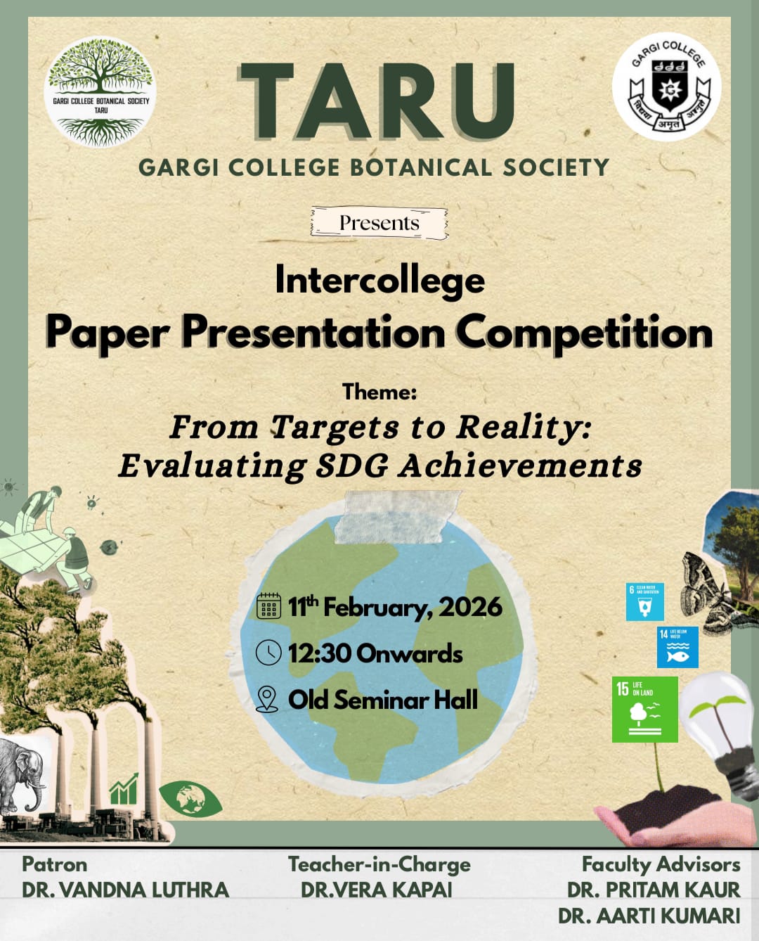 GCBS 'TARU' has been successfully organised an inter- college paper presentation competition on 'Sustainable Development Goals'. Students of various colleges of University of Delhi have actively participated in the competition.