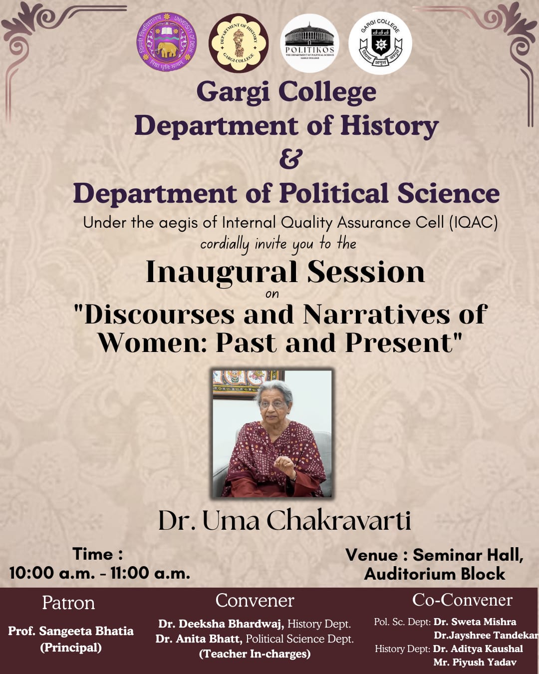Organized a National Colloquium in Collabaration with the department of History, strengthening interdisciplinary dialogue and academic enrichment on the theme "Discourses and Narratives of Wome: Past and Present".