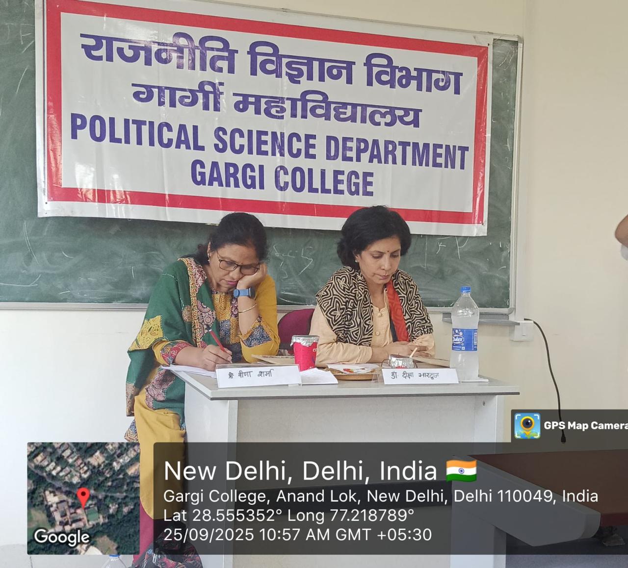 गार्गी महाविद्यालय की राजभाषा समिति एवं राजनीति विज्ञान विभाग ने 25 सितंबर 2025 को हिंदी दिवस के उपलक्ष्य में एक रोचक टर्नकोट वाद-विवाद प्रतियोगिता का आयोजन किया। वाद-विवाद का विषय था – “भारत–अमेरिकी संबंध समकालीन समय में बदल रहे हैं”, जिसने विद्यार्थियों को आज की वैश्विक राजनीति को आकार देने वाली सबसे महत्वपूर्ण साझेदारियों में से एक पर आलोचनात्मक रूप से विचार करने के लिए आमंत्रित किया।