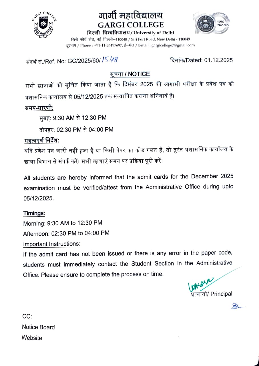 NOTICE FOR EXAMINATION ADMIT CARD | View |