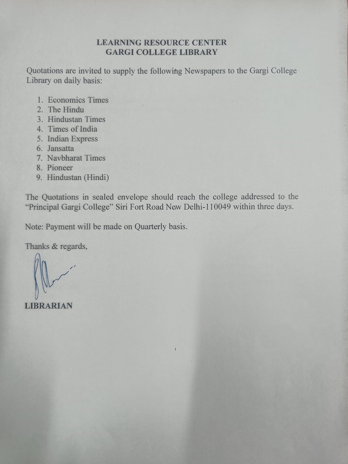 | Purchasing of Raddi from Gargi College Library | College Noitce | 23-10-2023 | 23-10-2023 | View | - |